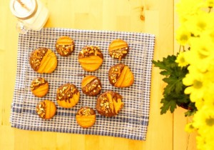 I saw this recipe and had to give it a go, but combined the recipe with this one!!  These cookies were easy to make, and completely delicious, and to make things even better, you then get to go and dip the little beauties in molten chocolate and coat them with pretzel crumbs.  I knew today was going to be a good day!